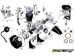 Originale und anpassbare Solex-Teile - Datenblatt 2takt-Motor - Plan als Explosionszeichnung: Diagramm des Motors