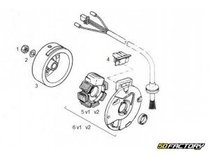 Rollerteile original und anpassbar - Datenblatt Motor Minarelli 2T Vertikalzylinder - Explosionszeichnung: Kickstarterschema.