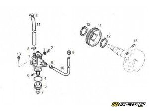 Alle Ersatzteile, die den Minarelli 2-Rollermotor mit vertikalem Zylinder ausmachen, sind auf unserer Website vorrätig: Anlasser, Anlasserdichtung und Unterlegscheibe, Anlasser-Zwischenzahnrad, Zentrierstift, Anlasser-Montageplatte, Clip Kickstartermutter, Kickstartermutter mit Sicherungsclip, Nadellager, Anlasserritzel, Kickstarterwelle, Kickstarterwellenfeder und Abstandhalter, Sicherungsring, Kickstarter.